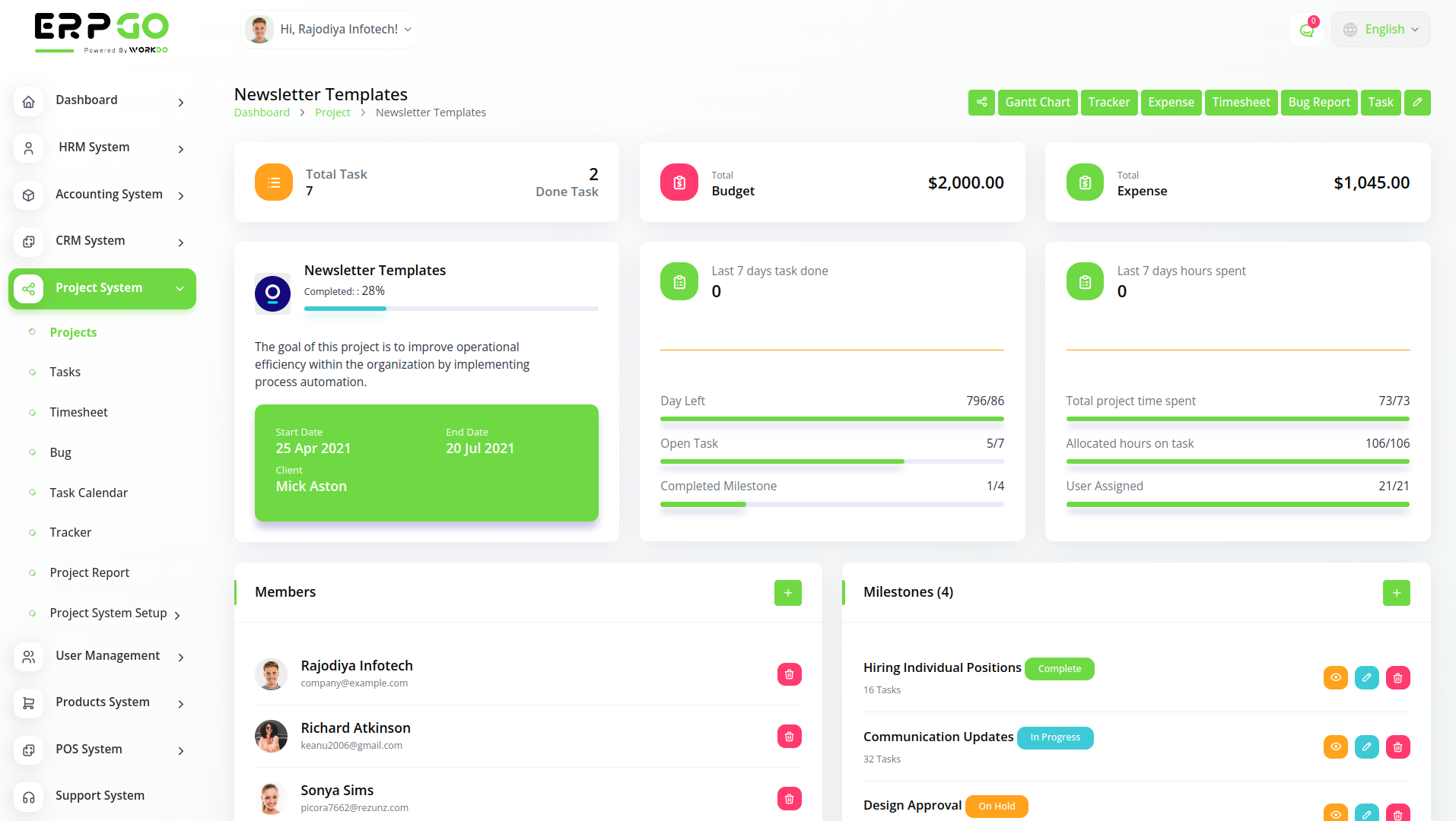 ERPGo SaaS All In One Business ERP With Project, Account, HRM, CRM & POS